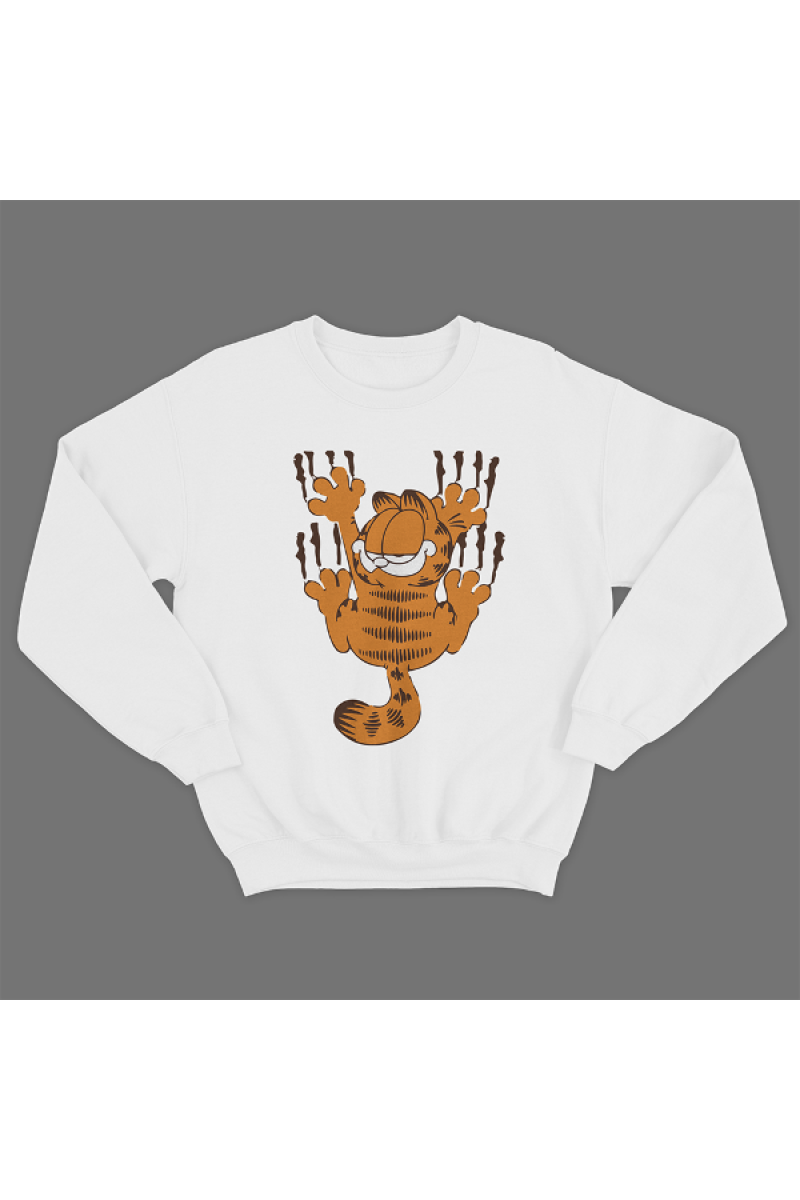 Прикольный свитшот с принтом на котором изображен рыжий кот - Гарфилд.