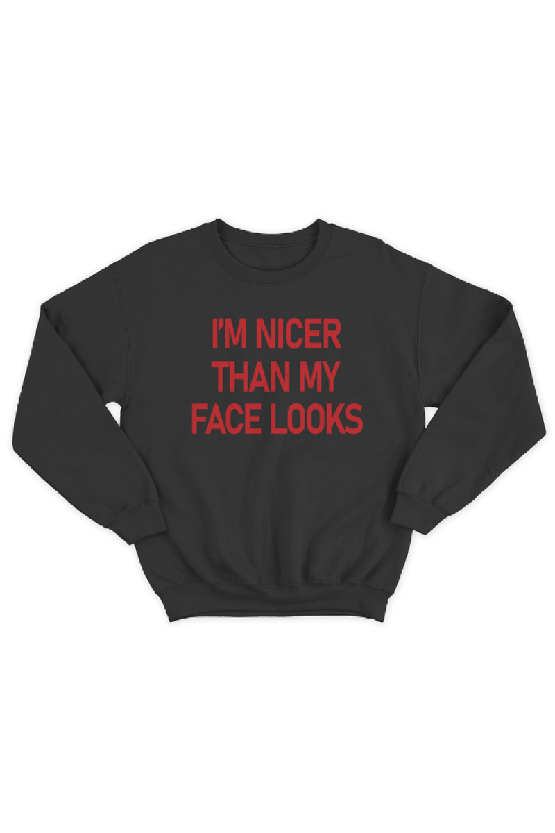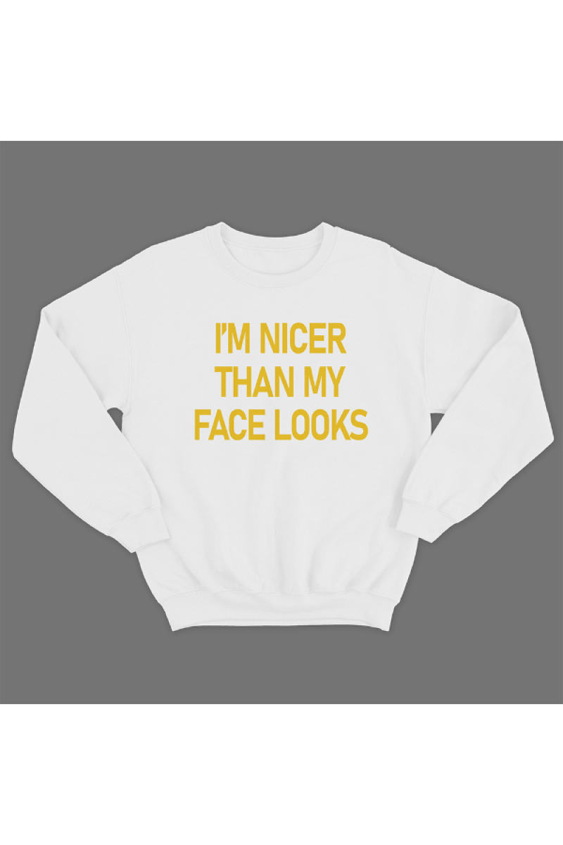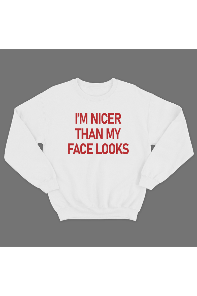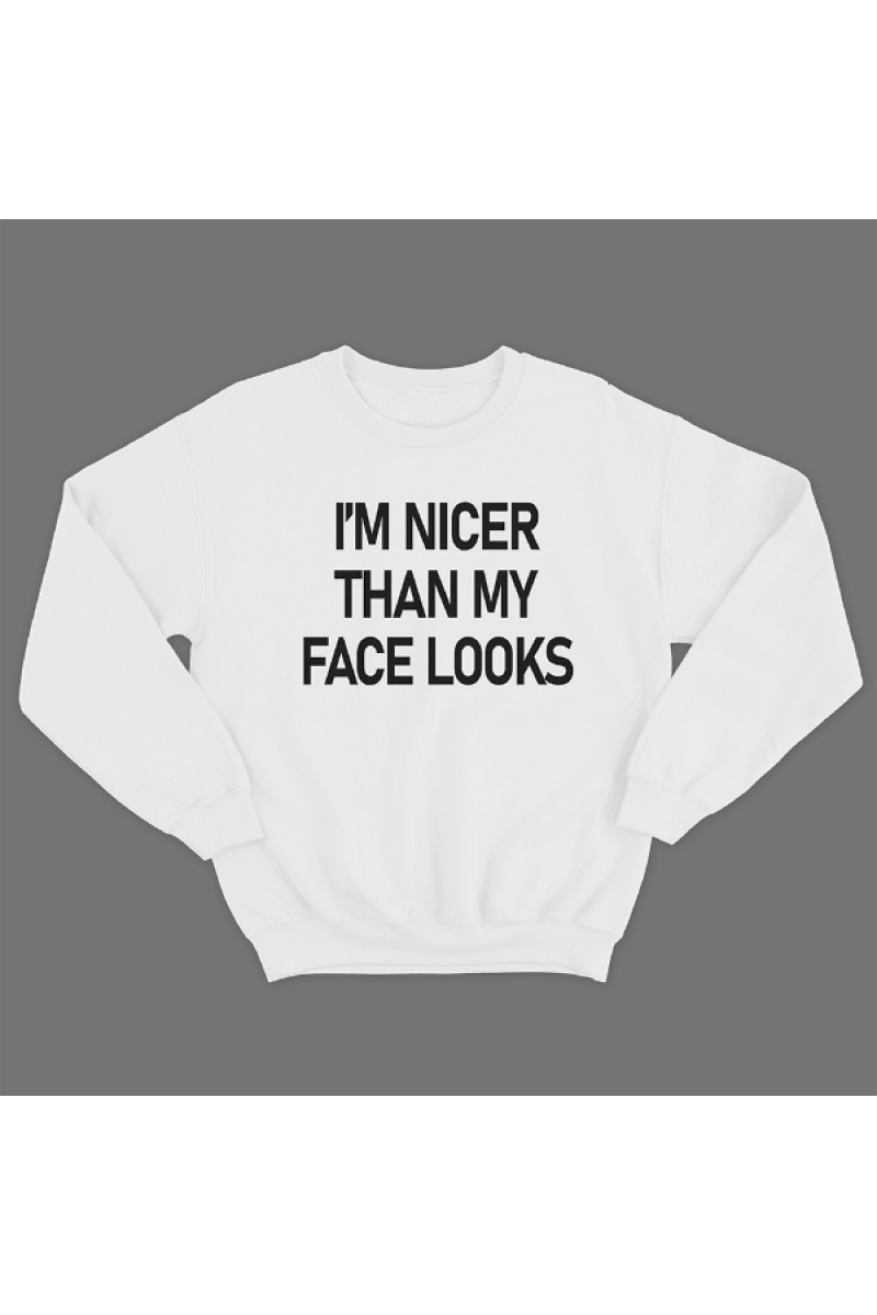 Прикольный свитшот с принтом "I'm nicer than my face looks" - "Я лучше, чем выглядит мое лицо".