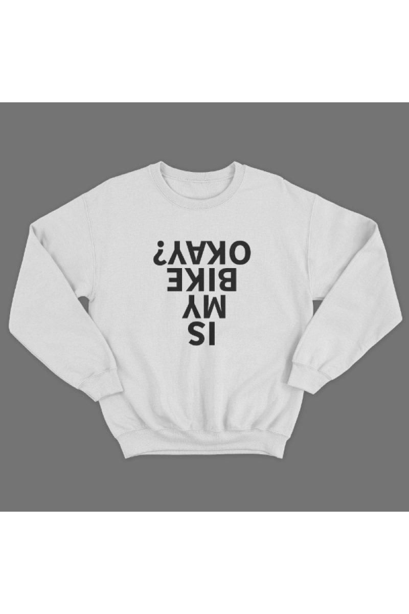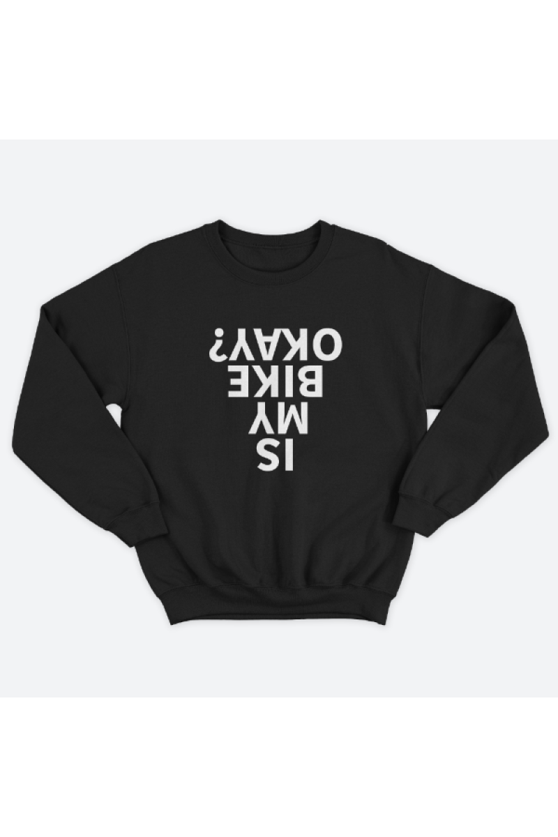 Прикольный свитшот с принтом "Is my bike okay?" - "Все в порядке с моим великом?".