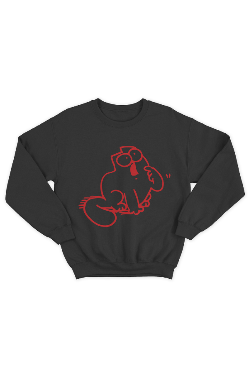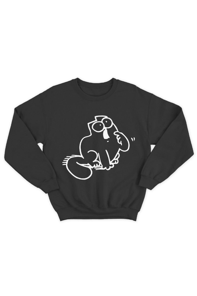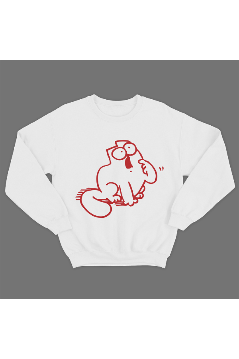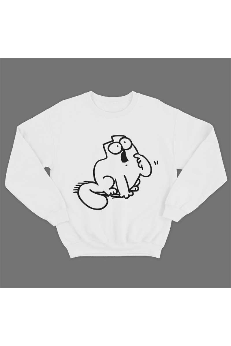 Прикольный свитшот с принтом на котором изображен кот из мультка "Sinon's cat", просящий покушать.