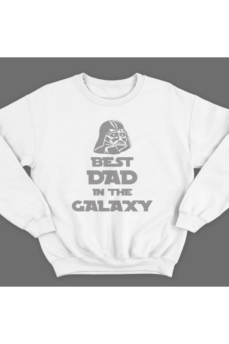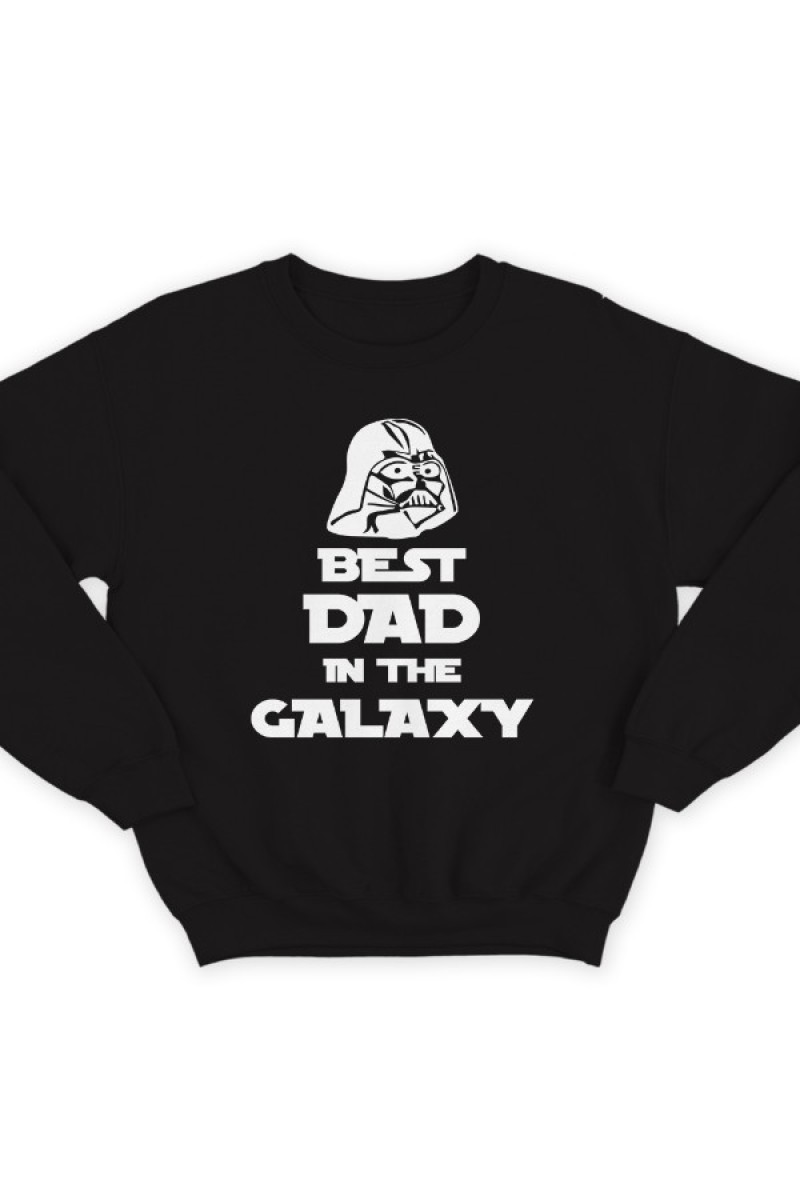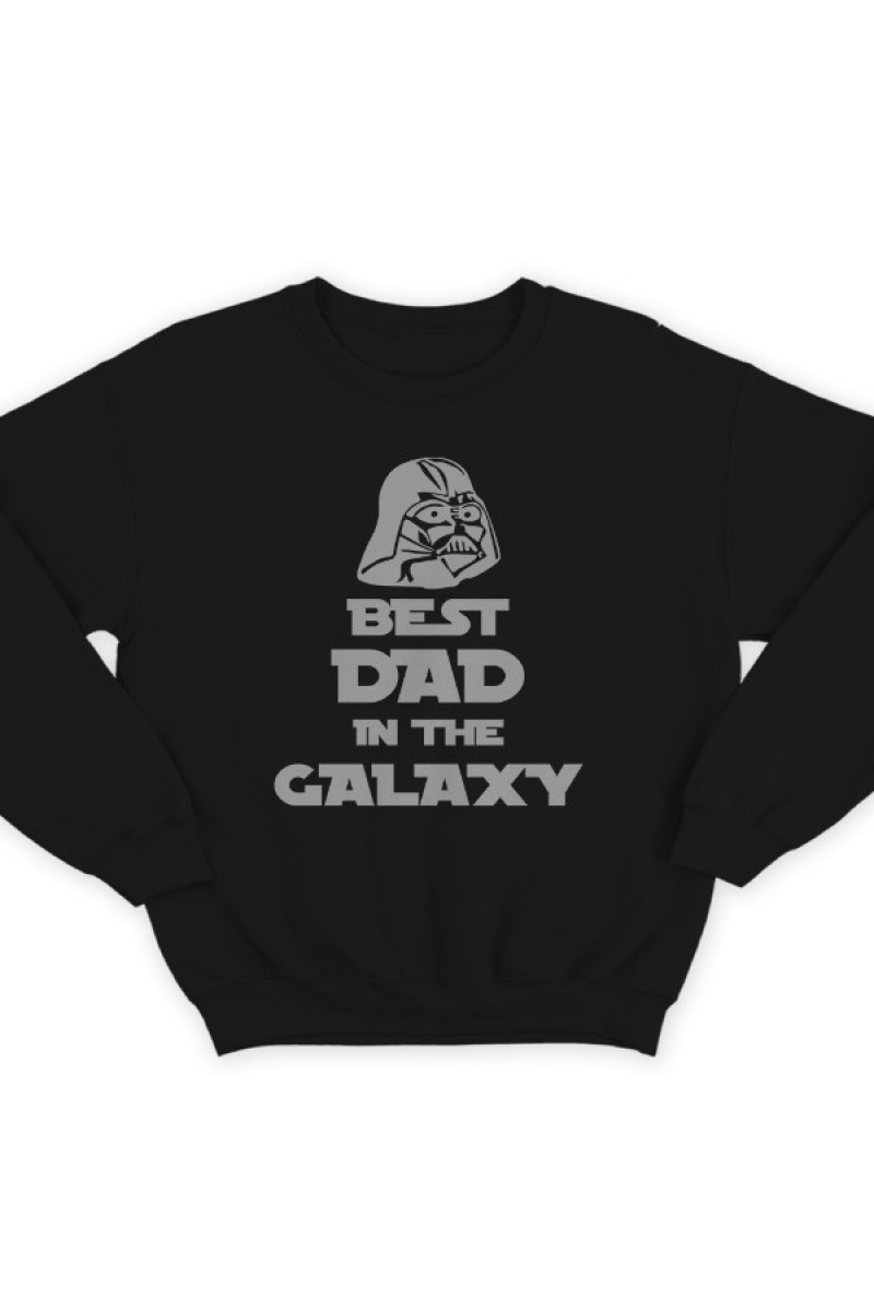 Толстовка без капюшона в подарок дл папы. "Best dad in the galaxy" - Лучший папа в галактике. Помимо надписи на принте есть изображение Дарта Вейдера.