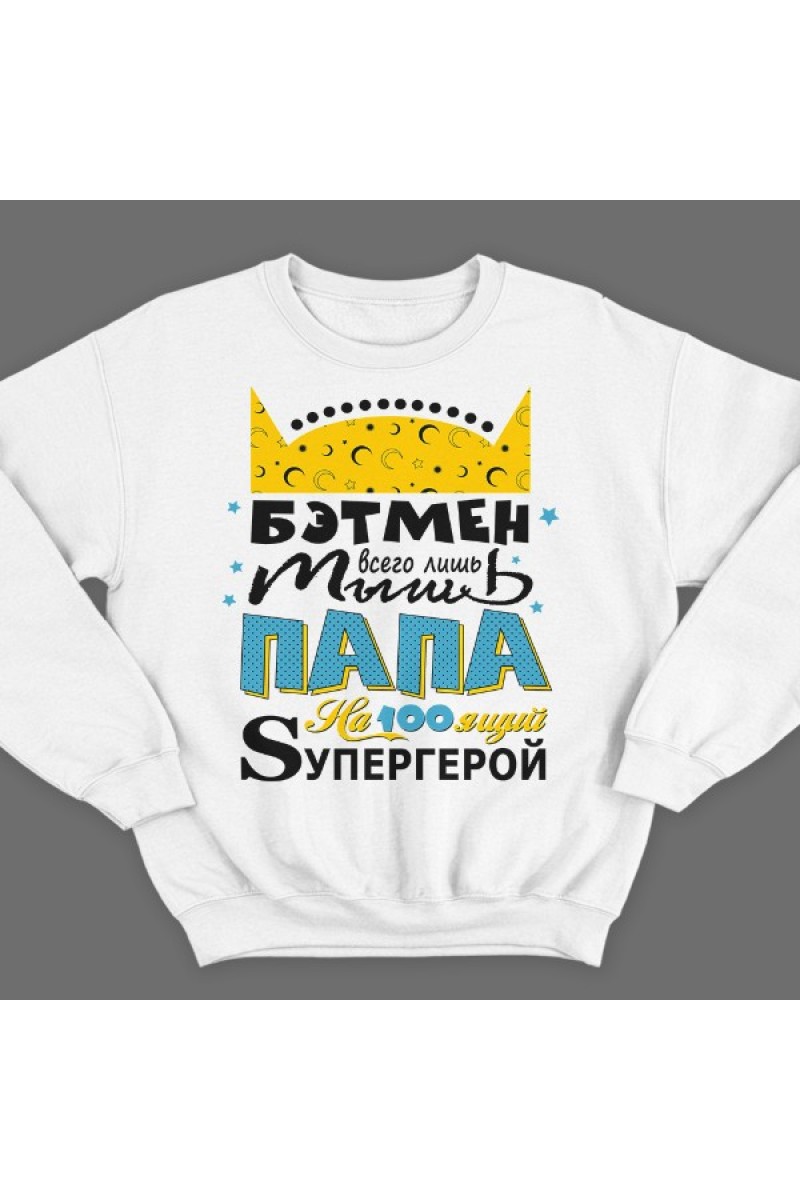 Свитшот для папы с надписью "Бэтмен всего лишь мышь Папа на100ящий супергерой"