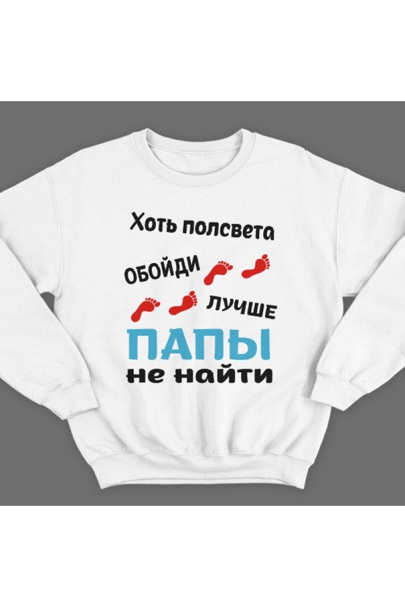 Свитшот для папы с надписью "Хоть полсвета обойди, лучше папы не найти"