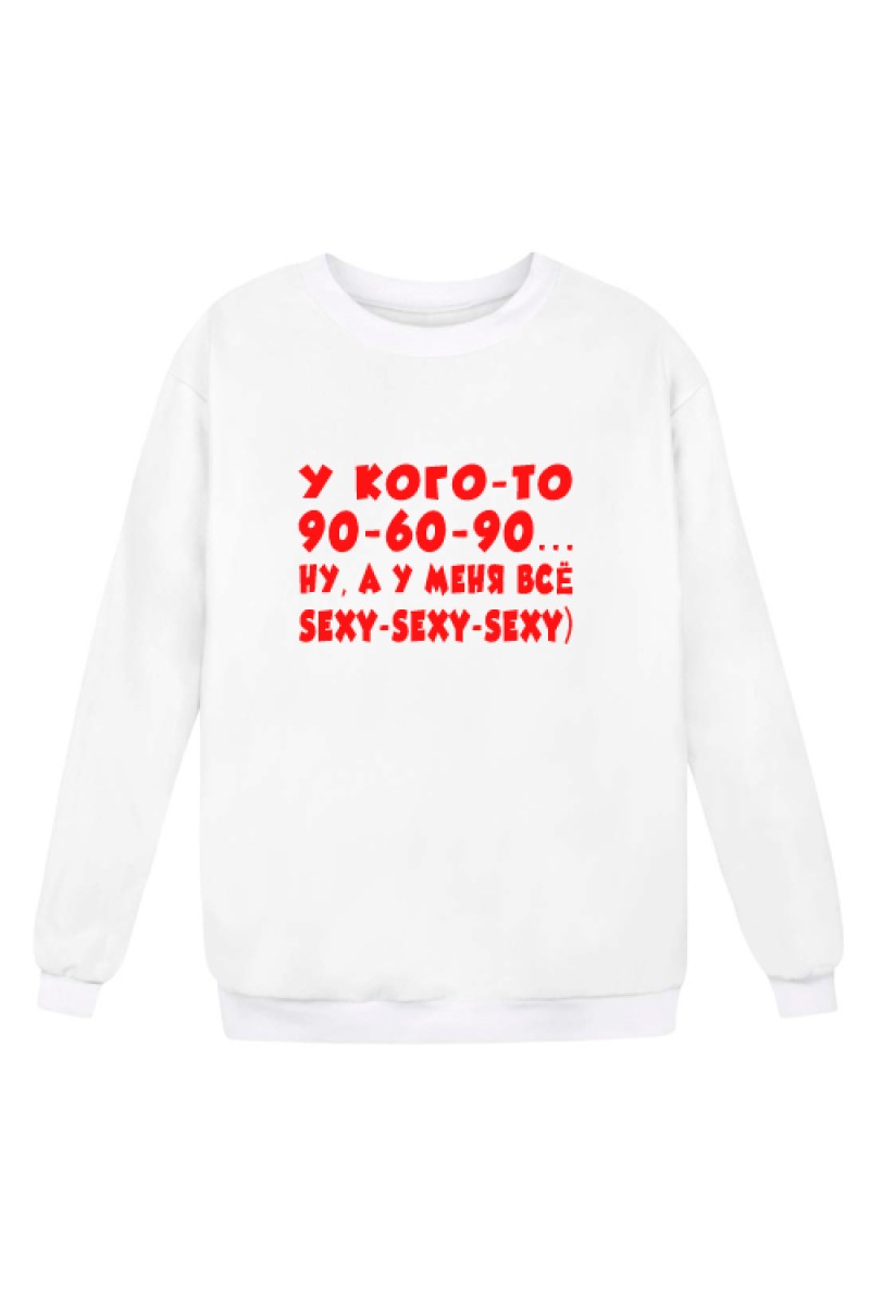 Женский свитшот "Кого-то 90-60-90, а у меня все sexy-sexy-sexy"